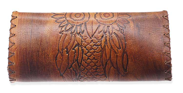 Χειροποίητες καπνοθήκες με σχέδια χαραγμένα σε δέρμα.
