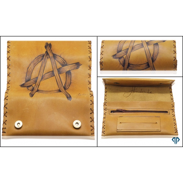 Εδώ βλέπετε δερμάτινη καπνοθήκη ΠΥΡΟΓΡΑΦΙΑ με το σύμβολο της "Αναρχίας" σε εξαιρετικής ποιότητας δέρμα.