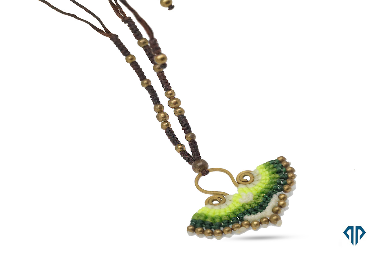 Κολιέ μακραμέ με κηροκλωστή σε μαυροπράσινη πεταλούδα. ΜΚΡΚΟΚΗ-08