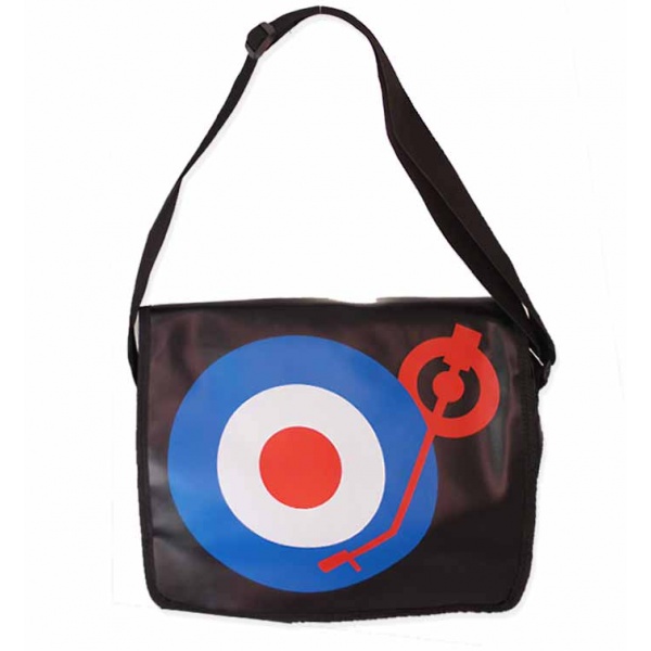 Τσάντα ώμου ταχυδρομική με το λογότυπο που χρησιμοποιεί η vespa.