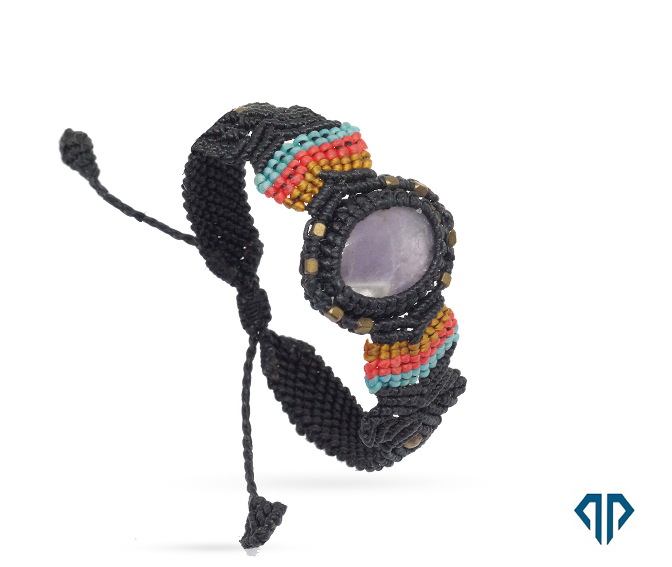 Μακραμε βραχιόλι με αχάτη σε μαύρο χρώμα. ΜΚΡΒΡ-03
