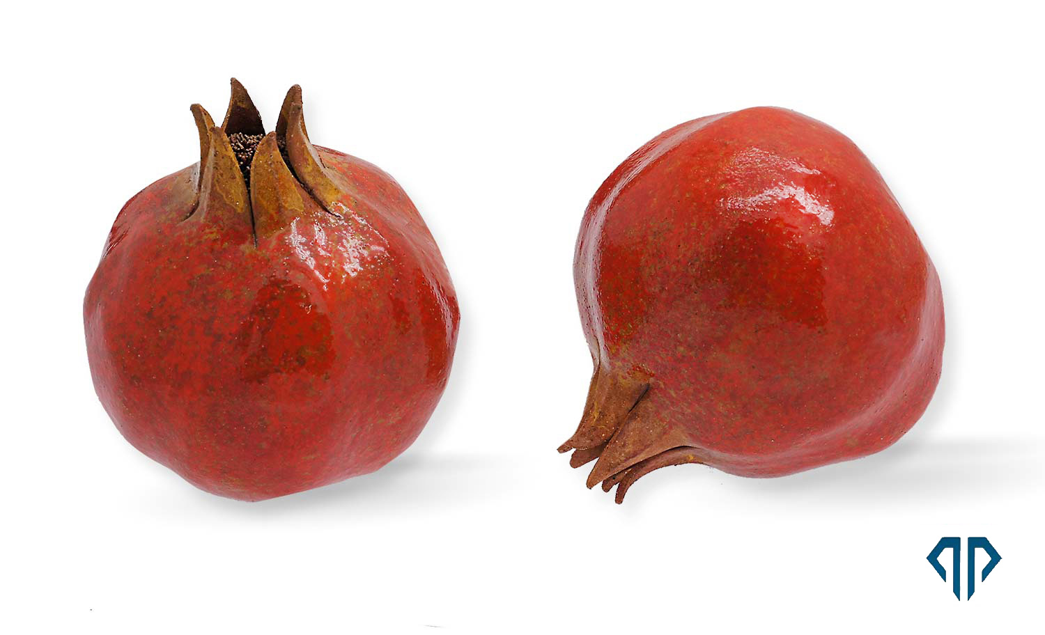 Ρόδια γλυπτά κεραμικά σε κοκκινόχρυσο χρώμα το κάθε ένα μοναδικό στο σχήμα, στις λεπτομέρειες, αλλά ακόμα και στις αποχρώσεις που παίρνει από το πυρρόχρωμα.