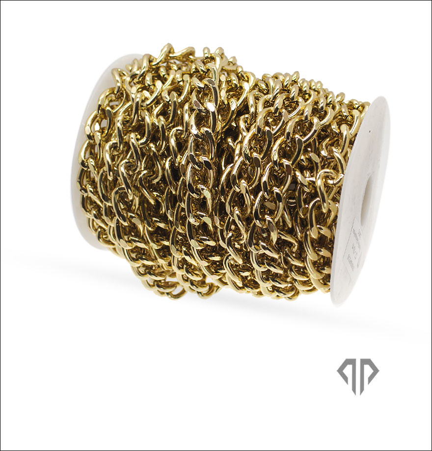 Αλυσίδες από αλουμίνιο, με διαμαντάρισμα, αμετάβλητες  με άψογο φινίρισμα, σε ένα  ανοδιωμένο χρυσό χρώμα. Είναι κατάλληλη, τόσο για τσάντες, όσο και για κοσμήματα. Το σχήμα τους είναι κομψό και απέριττο. Ξεχωρίζει όμορφα και δεν κουράζει τον ώμο. Η διάσταση των κρίκων είναι 1,8 εκ. Χ 1,2 εκ.Χ 0,32 εκ. Με το 1 τεμάχιο εννοείται το 1 μέτρο