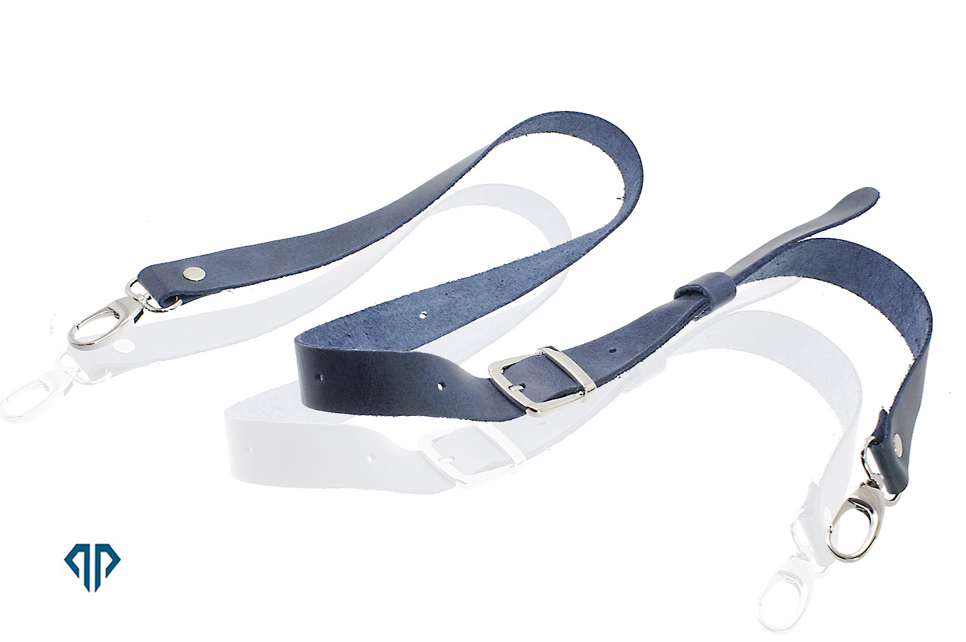 Λουριά από Δέρμα ταχυδρομικά για τσάντες, πλάτους 2,50 εκατ. Με μεταλλικούς ανοιγόμενους γάντζους, έτοιμα να τα χρησιμοποιήσετε! Αποτελούνται από 2 μέρη που ενώνονται μεταξύ τους, επιτρέποντας την αυξομείωση, του μήκους από 0,85 εκατ. έως 1,15 εκατ.  Το Δέρμα είναι άριστης ποιότητας. Μπορείτε να  τα χρησιμοποιήσετε σε περισσότερες τσάντες διότι αποσπώνται εύκολα.  Εδώ βλέπετε τα Δερμάτινα ταχυδρομικά λουριά σε μπλε ραφ χρώμα.