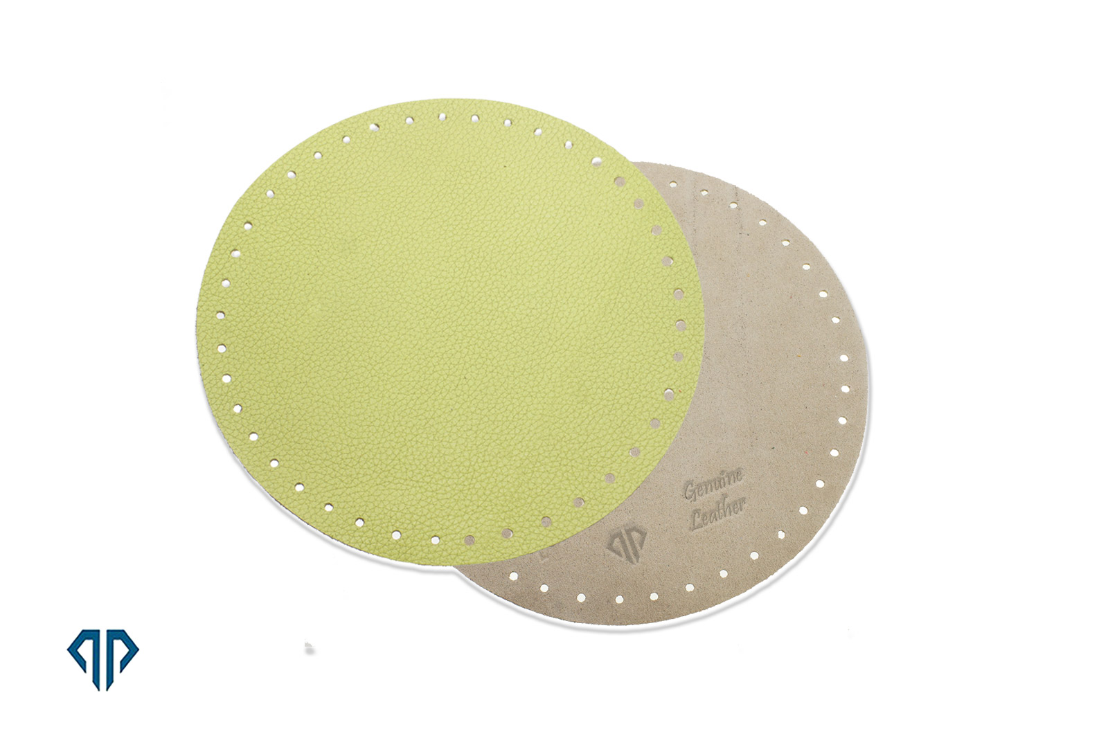 Πάτος, βάση για χειροποίητες τσάντες από 100% γνήσιο δέρμα, στρογγυλός διαμέτρου 18 cm, σε χρώμα κίτρινο_λεμονί. ΠΑΤΣΑ-47