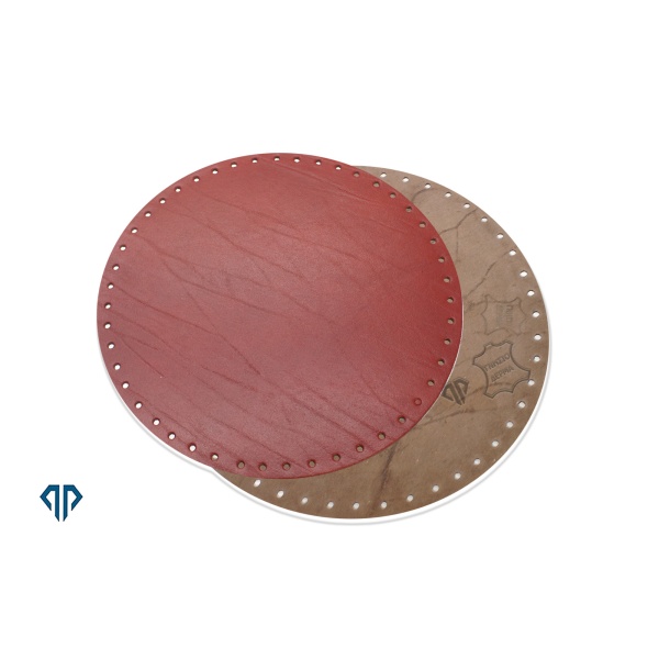 Πάτος, βάση για χειροποίητες τσάντες από 100% γνήσιο δέρμα, στρογγυλός διαμέτρου 22 cm, σε χρώμα σκούρο κόκκινο με νερά. ΠΑΤΣΑ-61